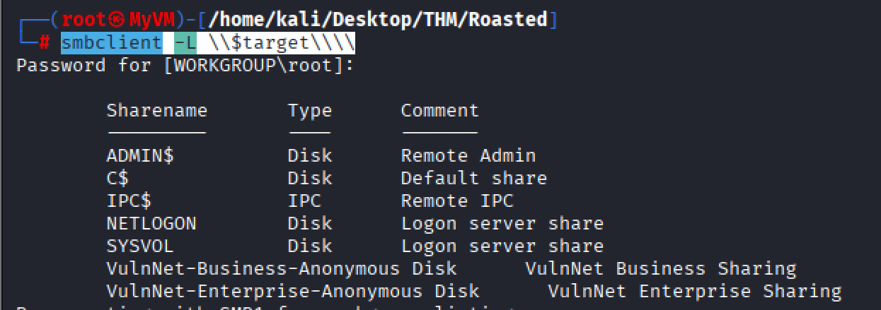 smbclient //$target/VulnNet-Enterprise-Anonymous